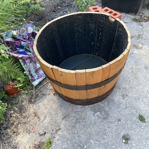 Bargain Barrel chooses to cut up wine barrels that are tired or may have bent lids. We half a range of whiskey and wine barrels available. Full Barrel Small - approx.