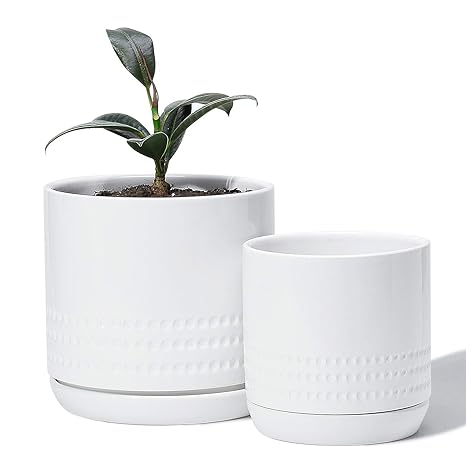 Potey Plant Pots With Drainage Holes Saucer Glazed Ceramic Modern Planters Indoor Bonsai Container For Plants Flower Aloe Set Of 2 6 6 5 1 Inch Shiny White Plants Not Included Amazon In Garden