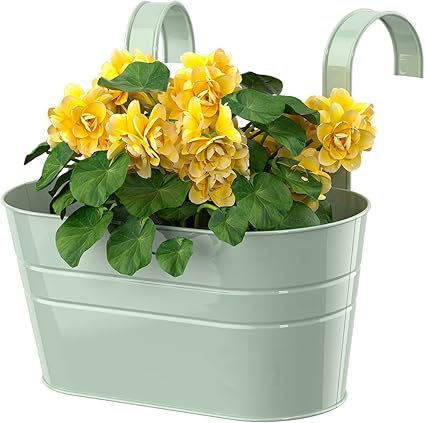 BESTonZON 2 x Iron Hanging Planter Flower Pots Balcony Garden Railing Planter Fence Hanging Metal Bucket Plant Holder for Indoor and Outdoor Use White 2028 20.
