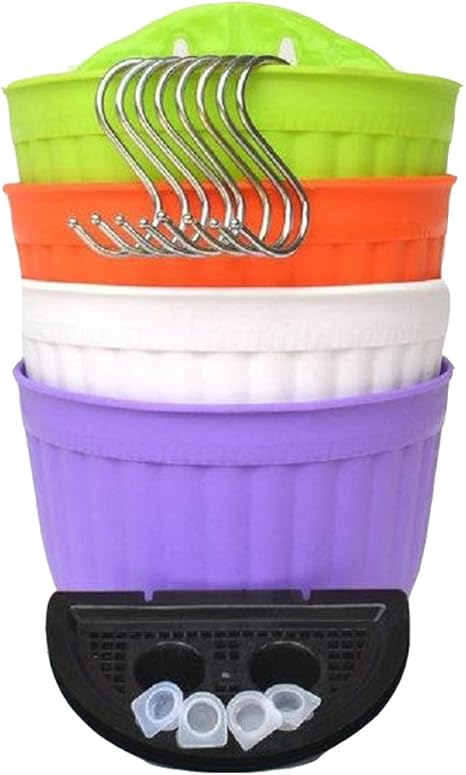 Mishiner Wall Mounted Plastic Hanging Flower Pot Vase Planter Fence Balcony Garden Patio Hanging Planter With Hanging Hook Random Color Large